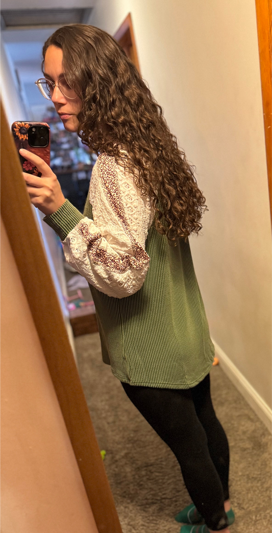 Oversized Ribbed Leopard Lace Top INS