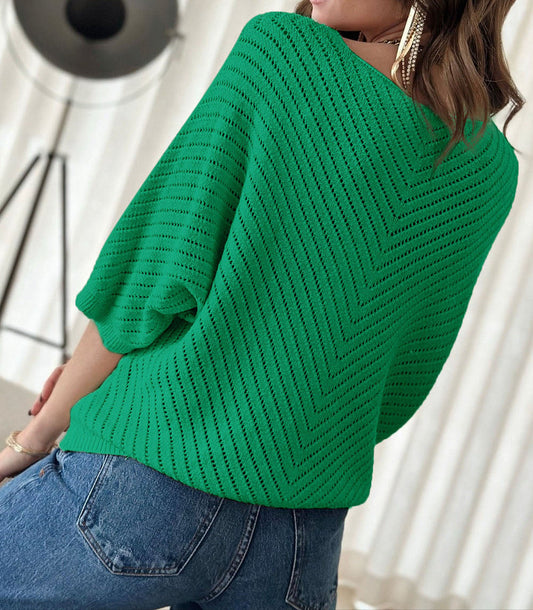 Green V Neck Sweater Top LT