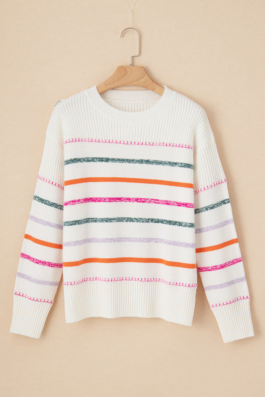 White Colorful Stripe Sweater LT